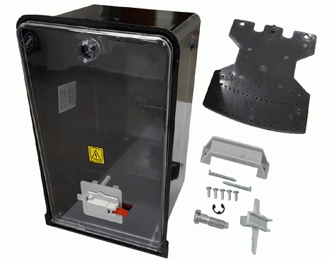 Cuerpo termoplástico NEG, tapa de PC transp - Puede ser embutida en paredes de mamposteria - Con bulón de cierre antifraude de latón - Con disparo reseteo - 415x265x210mm